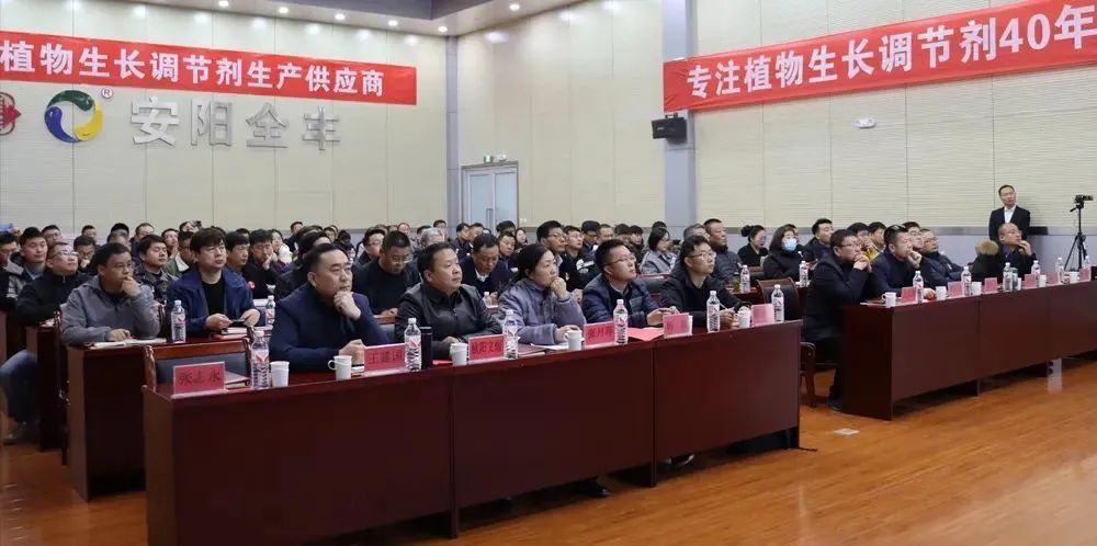 安陽全豐董事長王志國在開場致辭中對全國各地的合作伙伴相聚古都安陽表示熱烈歡迎,感謝大家對全豐多年的支持!全豐在大家的共同陪伴下,現有安陽和鶴壁兩個生產廠區,占地500余畝,已經發展成為國內重要的植物生長調節劑生產基地。公司始終奉行客戶至上,市場主導,變革創新,專業化服務是我們長期秉承的經營理念,產品開發、產品優質和國際化多元化的業務平臺也是我們獨特的優勢。我們將一如既往地專注植物調節劑的研發生產,以最優質的產品和服務,回報所有的客戶長期以來的支持和幫助。