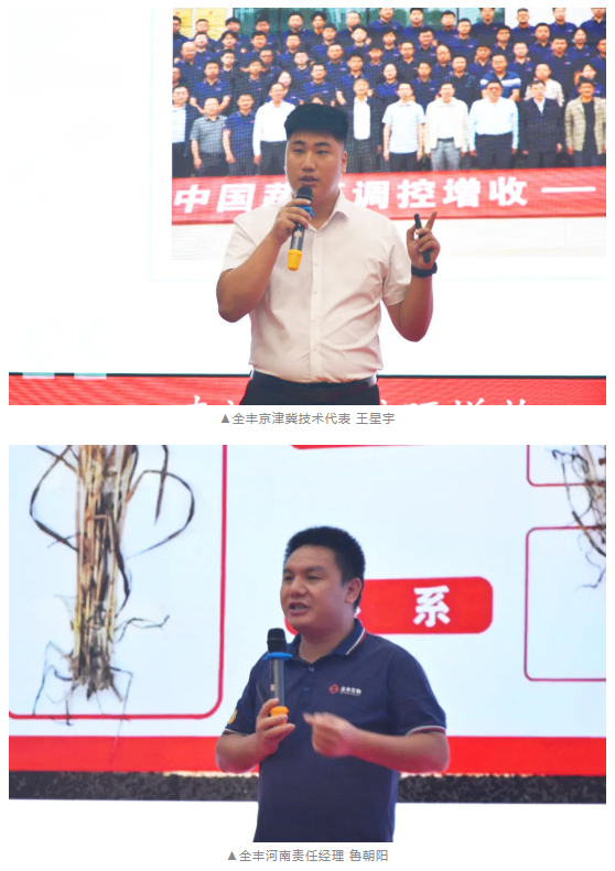 全豐京津冀技術代表王星宇與河南責任經(jīng)理魯朝陽聯(lián)袂登臺,以“因地制宜·精準增效”為核心,分別針對大蒜與小麥主產(chǎn)區(qū)存在的痛點問題展開深度剖析。并結合實際需求與作物生長習性,提出一套兼具科學性與實操性的全周期種植解決方案。該方案憑借其精準的問題診斷和顯著的效益提升空間,引發(fā)參會人員的熱烈討論,現(xiàn)場互動頻頻,獲得了高度認可。