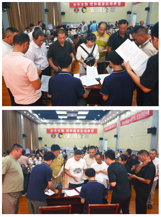 在交流與分享之后,訂貨會環節將會議氣氛推向了高潮。現場氣氛熱烈非凡,經銷商代表和種植大戶們紛紛踴躍訂購全豐施必達小麥方案相關產品。他們用實際行動表達了對全豐產品的信任與認可,也展現了對新一季小麥豐收的堅定信心。工作人員忙碌而有序地處理著訂單,現場一片繁忙景象,充分彰顯了本次交流會的豐碩成果。