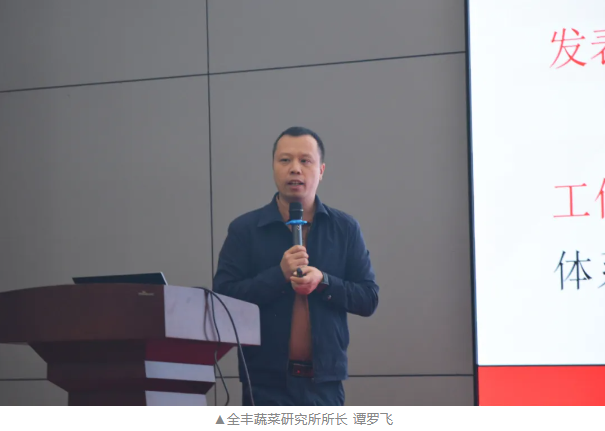 全豐蔬菜研究所所長譚羅飛以《辣椒高產管理技術》為主題,從辣椒生育周期、品種特性及常見問題切入,深入剖析了促根壯苗、控旺促花、保果提質等關鍵環節的技術要點。他指出:“全豐方案通過‘促根-控苗-保果-促轉色’全鏈條管理,可顯著增加有效分枝數、提升坐果率,最終實現產量與品質雙突破。”現場展示的多組對比數據與田間實拍效果圖,引發與會者熱烈討論。